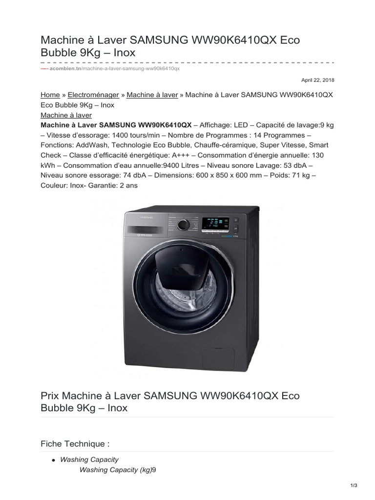 Machine A Laver Samsung Ww90k6410qx Eco Bubble 9kg Inox Machine