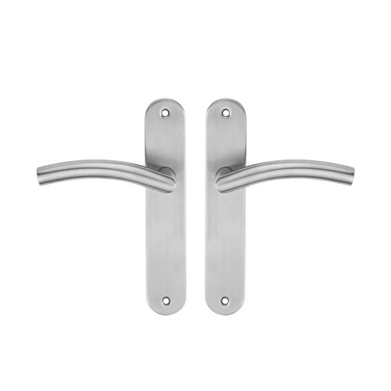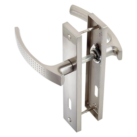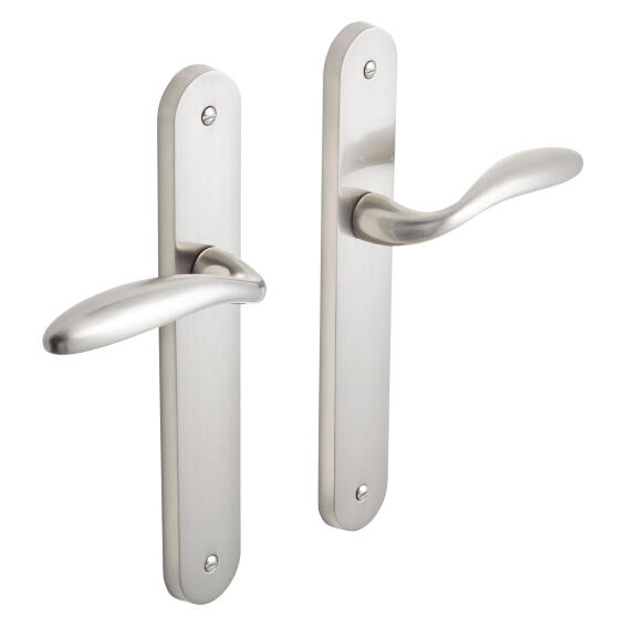 Door Handles On Plate Keyless Satin Nickel Finish Margaud 195mm