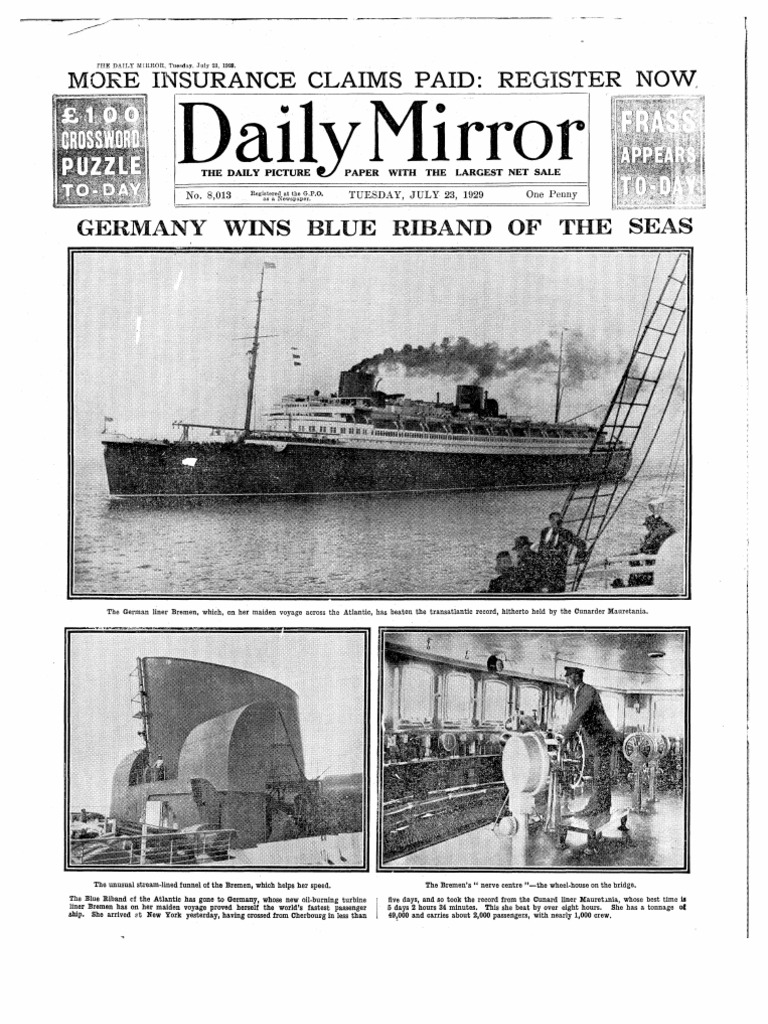 Dmir 1929 07 23 001 Alemanha Ganha Blue Riband Ocean Liners