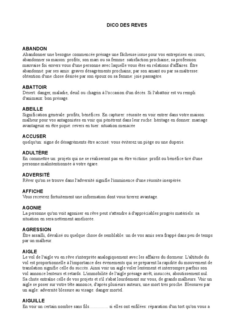 Exemples De Reves Que Signifient Nos Songes Elle