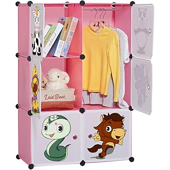 Zhichuan Penderie De Dessin Anime Pour Armoire Boite De Rangement Pour Armoire Pour Enfants Armoires Etageres Plastiques Armoire De Rangement Bricolage Composee De Cubes Et De Pieces Suspendues Amazon Fr Cuisine Maison